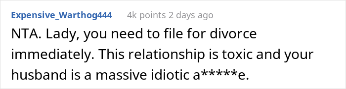 It turned out that the husband’s brother did not have enough money to arrange his own wedding, so the OP’s hubby decided to sell his car to help his brother. His wife tried to dissuade him from taking such a step, but he still did as he wanted. In fact, more than one scandal took place – and the OP stated that she would no longer allow her husband to drive her own car, especially since the man was not a good driver.