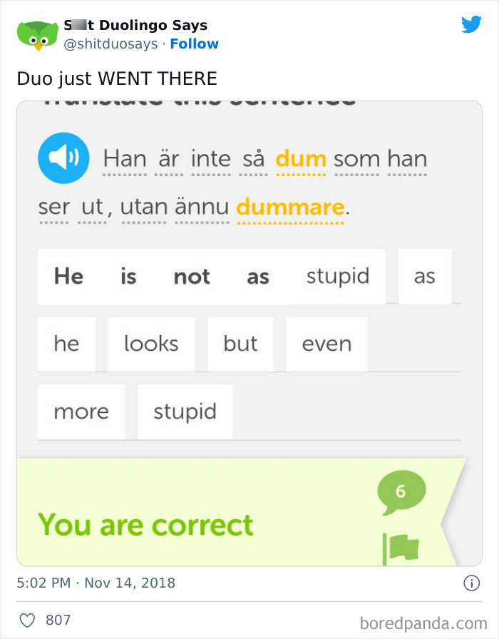 It's like an online archive of the funniest, silliest, and downright weirdest prompts Duolingo's owl has thrown at people.
