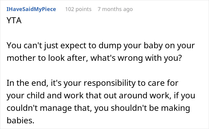 Many people thought that the author was wrong to expect her mom to look after her baby