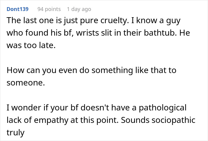 This 18-year-old woman with “a history of trauma and PTSD” had also had her boyfriend pulling pranks on her after he got into YouTube. While it all started like games for him, the stunts quickly escalated. One particular prank crossed the line and completely broke down the author.