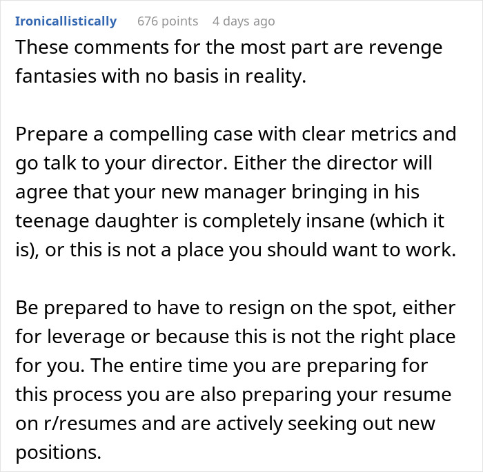 The post New Manager Tries To Replace Worker With His Teenage Daughter, So They Ask The Internet For Advice first appeared on Bored Panda.