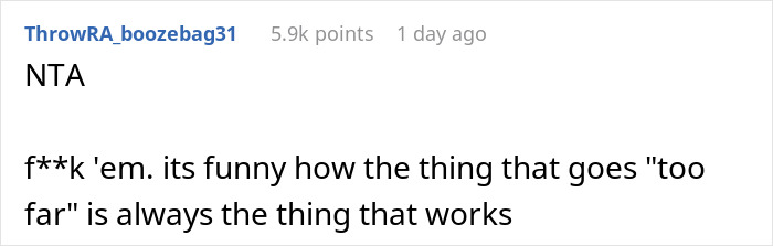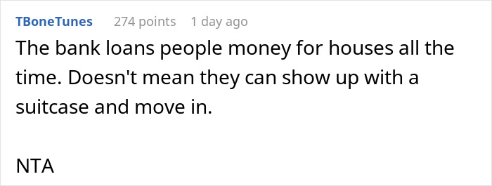 That argument doesn’t hold much water. Redditor u/SafePurple2911’s name is the only one on the insurance and she is the sole owner. What’s more, she had actually repaid her boyfriend all the money he’d lent her. Taking all of this into account, it’s clear that her bf’s sister and dad went against her wishes.