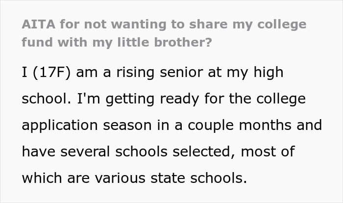 The post “[Am I The Jerk] For Not Wanting To Share My College Fund With My Little Brother?” first appeared on Bored Panda.