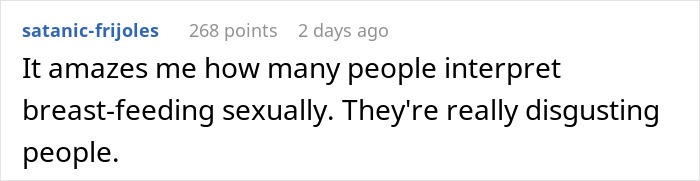 However, sometimes such offenders in terms of breastfeeding can be found among your own relatives or in-laws. For example, the FIL of the heroine of this post categorically forbade her to breastfeed her baby in any of the rooms of his own house, except for the guest bedroom, and this was not twenty years ago, but relatively recently. So the number of weird people hasn’t actually decreased that much in two decades… And now we’re also looking forward to your own comments and maybe some similar tales about breastfeeding, so please feel free to add everything in the comments below.