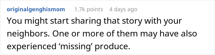 Of course, in OP’s story, the issue is less theft than the Karen neighbor calling OP selfish for harvesting her own fruit. Knowing you are a thief is one thing, but constructing some sort of bizarre reality where another person’s trees and the fruit from it belongs to you is mind-boggling for most of us. However, as experience shows, this sort of person is surprisingly common, so much so that one can find hundreds, if not thousands of such tales online just by searching for some combination of the words “Karen,” “story,” and “entitled.”