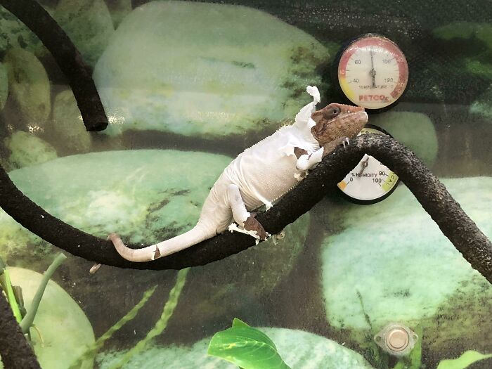 #95 This Chameleon Shedding His Skin Looks Like He Is Wearing Pajamas